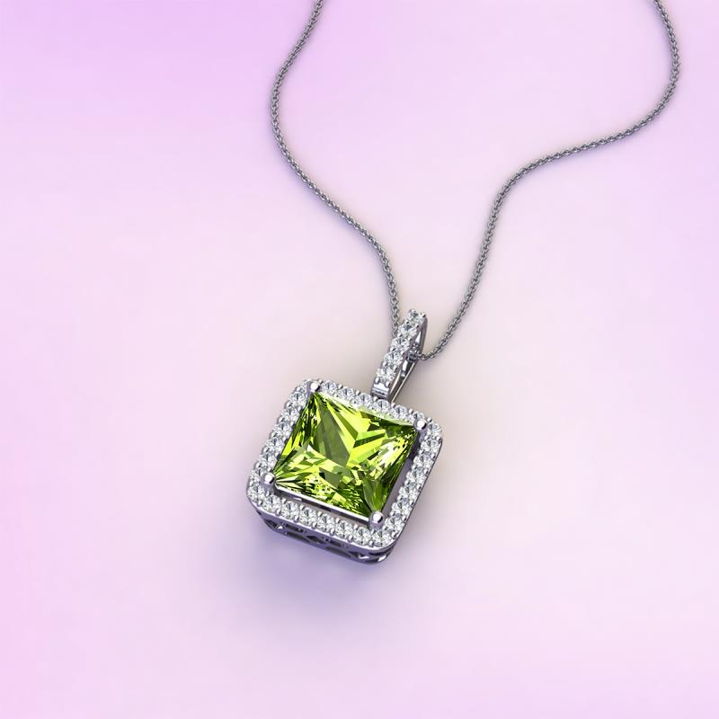 Princess Cut Peridot and Round Diamond 1.88 ctw Womens Halo Pendant Necklace 18K White Gold. Included 16 Inches 18K White Gold Chain More Details ...