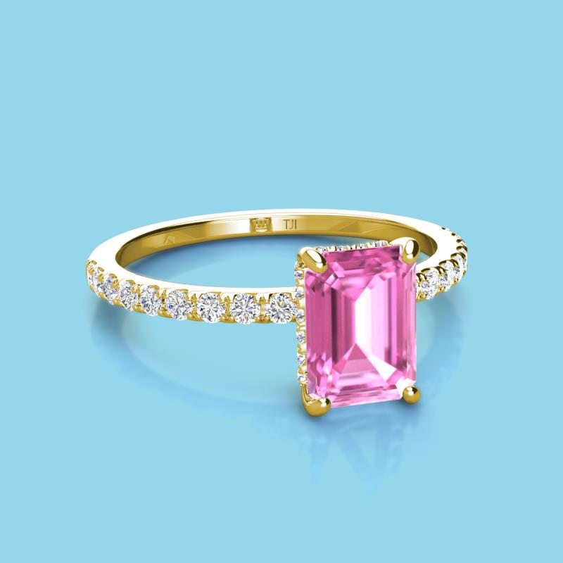 Emerald Cut (8x6 mm) Pink Sapphire and Round Diamond 1.97 ctw Womens Hidden Halo Engagement Ring 10K Yellow Gold More Details ...