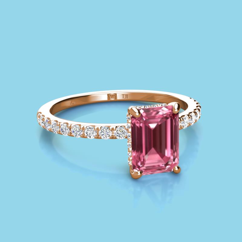 Emerald Cut (8x6 mm) Pink Tourmaline and Round Diamond 1.77 ctw Womens Hidden Halo Engagement Ring 14K Rose Gold More Details ...