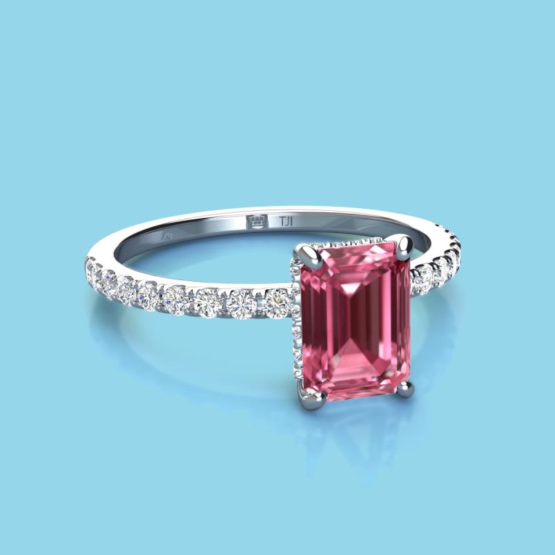 Emerald Cut (8x6 mm) Pink Tourmaline and Round Diamond 1.77 ctw Womens Hidden Halo Engagement Ring 18K White Gold More Details ...