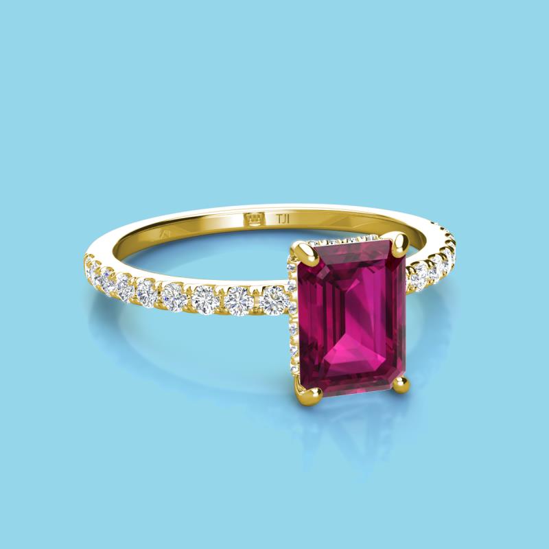 Emerald Cut (8x6 mm) Rhodolite Garnet and Round Diamond 2.17 ctw Womens Hidden Halo Engagement Ring 18K Yellow Gold More Details ...