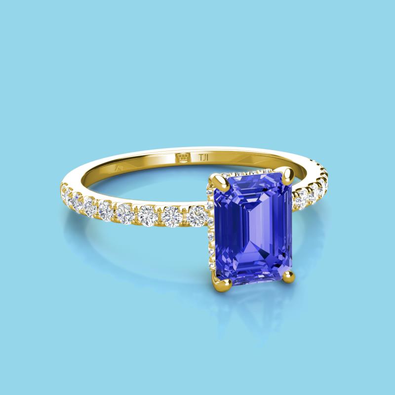 Emerald Cut (8x6 mm) Tanzanite and Round Diamond 1.87 ctw Womens Hidden Halo Engagement Ring 10K Yellow Gold More Details ...