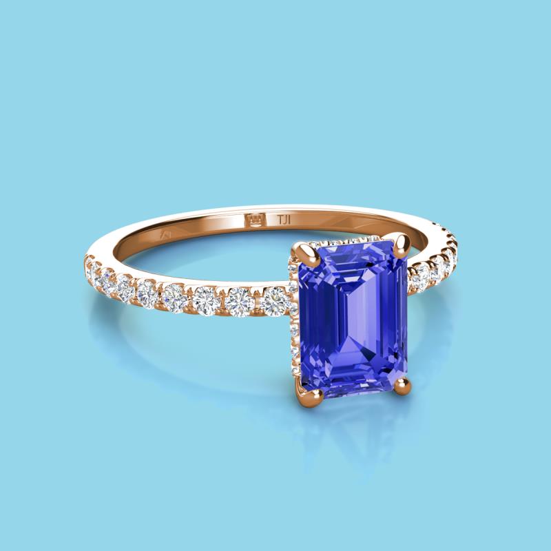 Emerald Cut (8x6 mm) Tanzanite and Round Diamond 1.87 ctw Womens Hidden Halo Engagement Ring 10K Rose Gold More Details ...