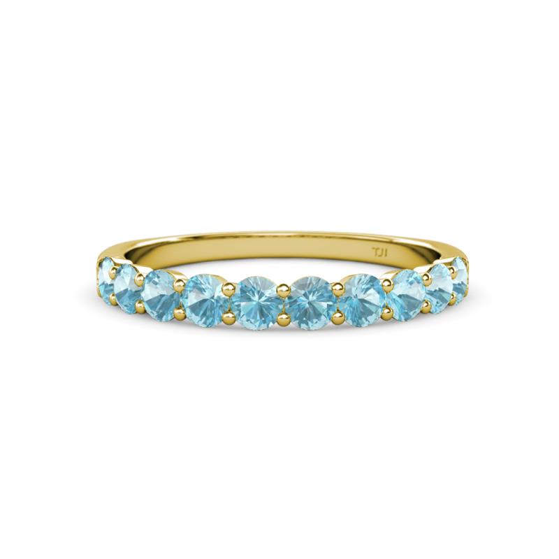 Aquamarine 10 Stone Womens Wedding Band Stackable 1.05 ctw 14K Yellow Gold More Details ...