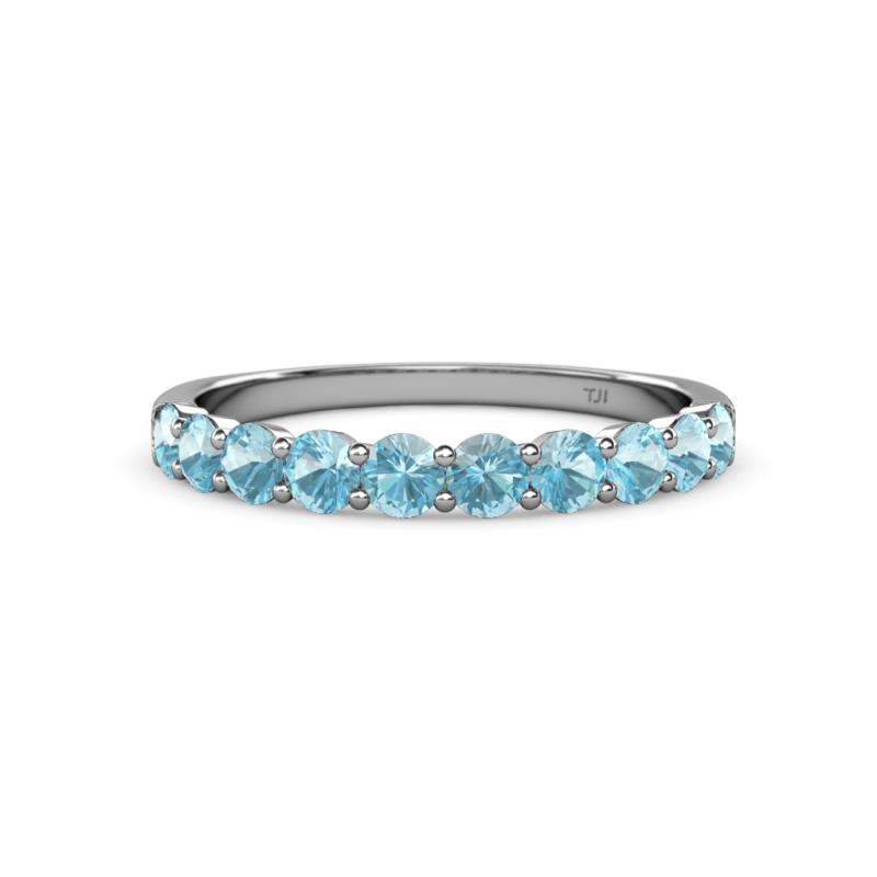 Aquamarine 10 Stone Womens Wedding Band Stackable 1.05 ctw 18K White Gold More Details ...