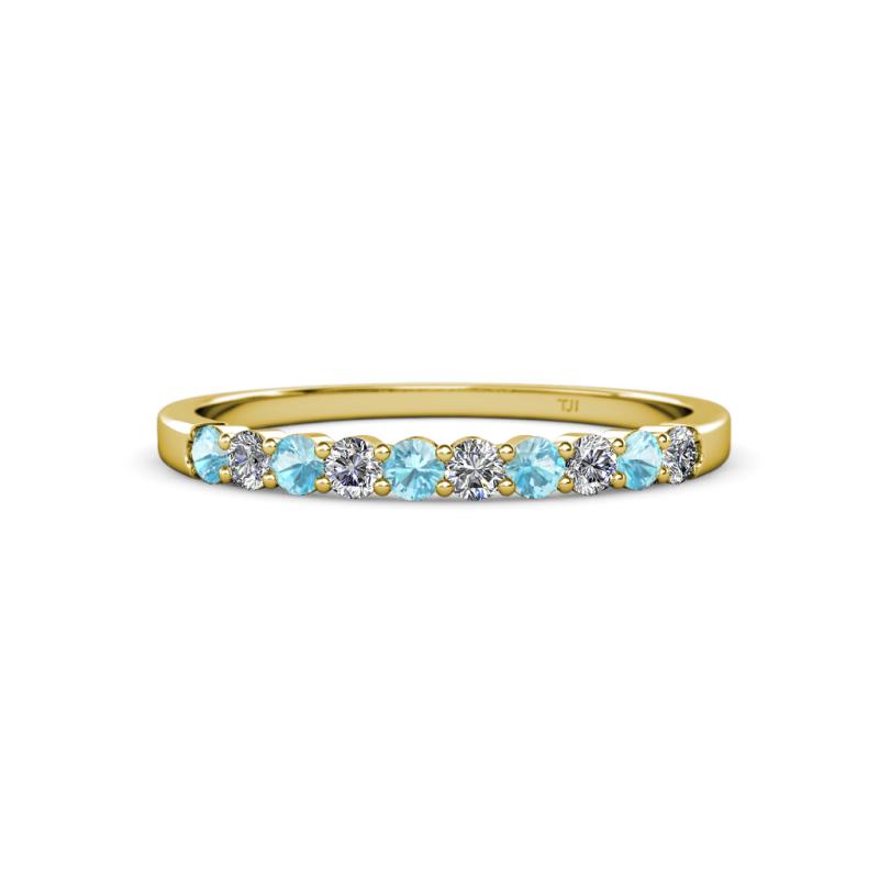 Aquamarine and Diamond 10 Stone Womens Wedding Band Stackable 0.54 ctw 10K Yellow Gold More Details ...