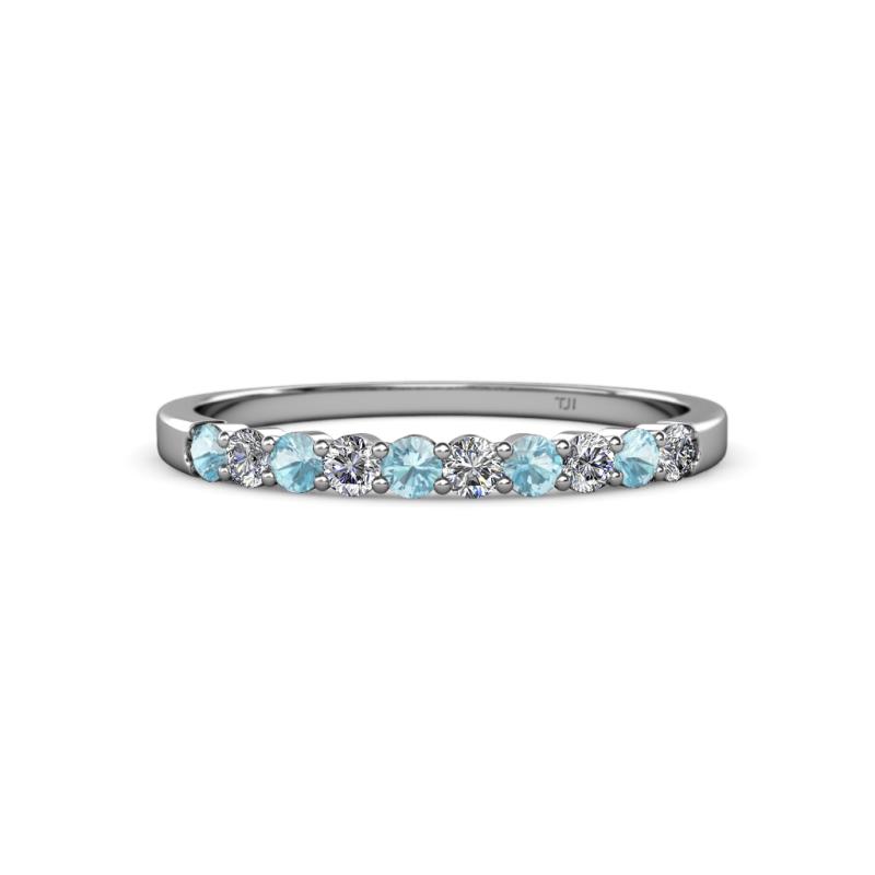 Aquamarine and Diamond 10 Stone Womens Wedding Band Stackable 0.43 ctw 925 Sterling Silver More Details ...