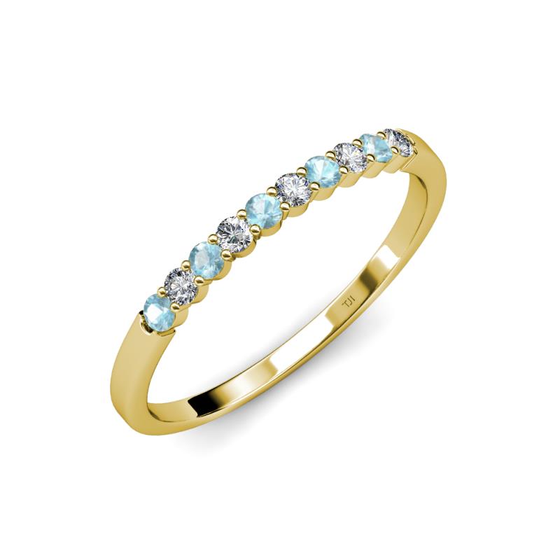 Aquamarine and Lab Grown Diamond 10 Stone Womens Wedding Band Stackable 0.43 ctw 14K Yellow Gold More Details ...