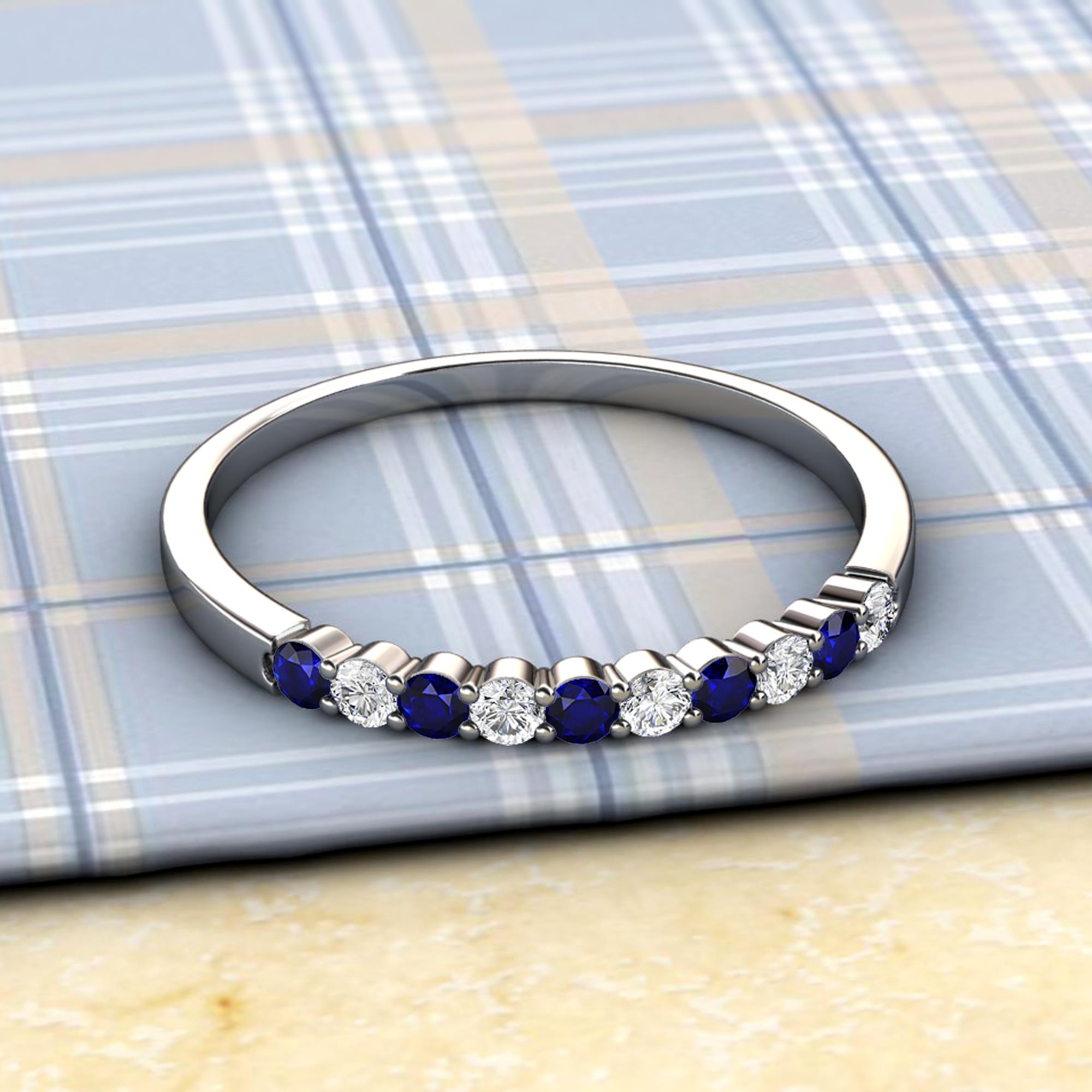 Blue Sapphire and Diamond 10 Stone Womens Wedding Band Stackable 0.51 ctw 14K White Gold More Details ...