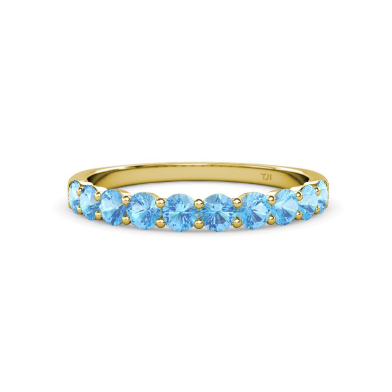 Blue Topaz 10 Stone Womens Wedding Band Stackable 1.10 ctw 10K Yellow Gold More Details ...