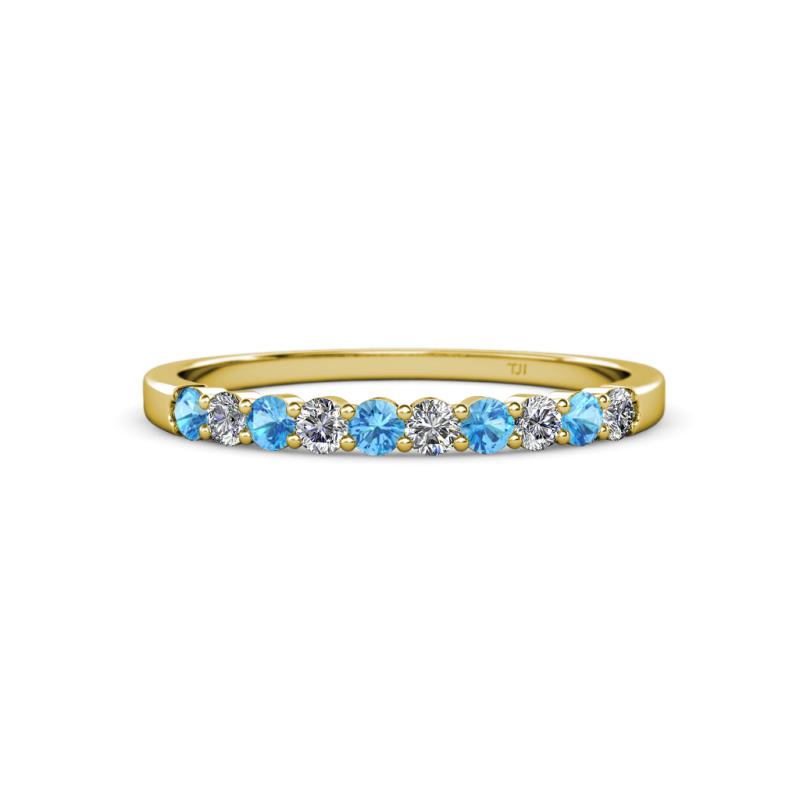 Blue Topaz and Diamond 10 Stone Womens Wedding Band Stackable 0.55 ctw 18K Yellow Gold More Details ...