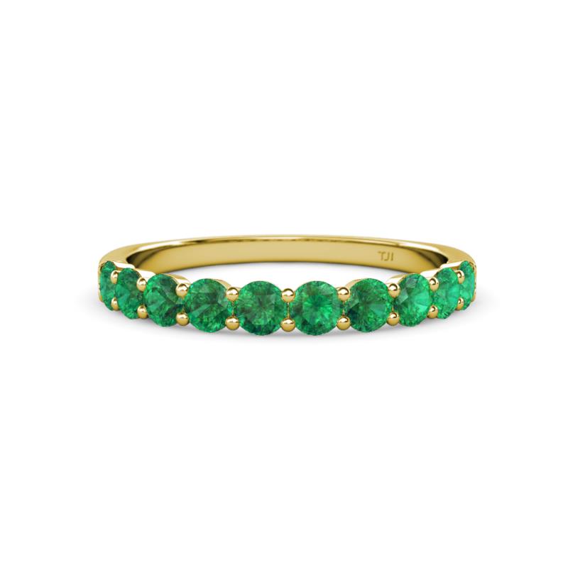 Emerald 10 Stone Womens Wedding Band Stackable 0.95 ctw 10K Yellow Gold More Details ...