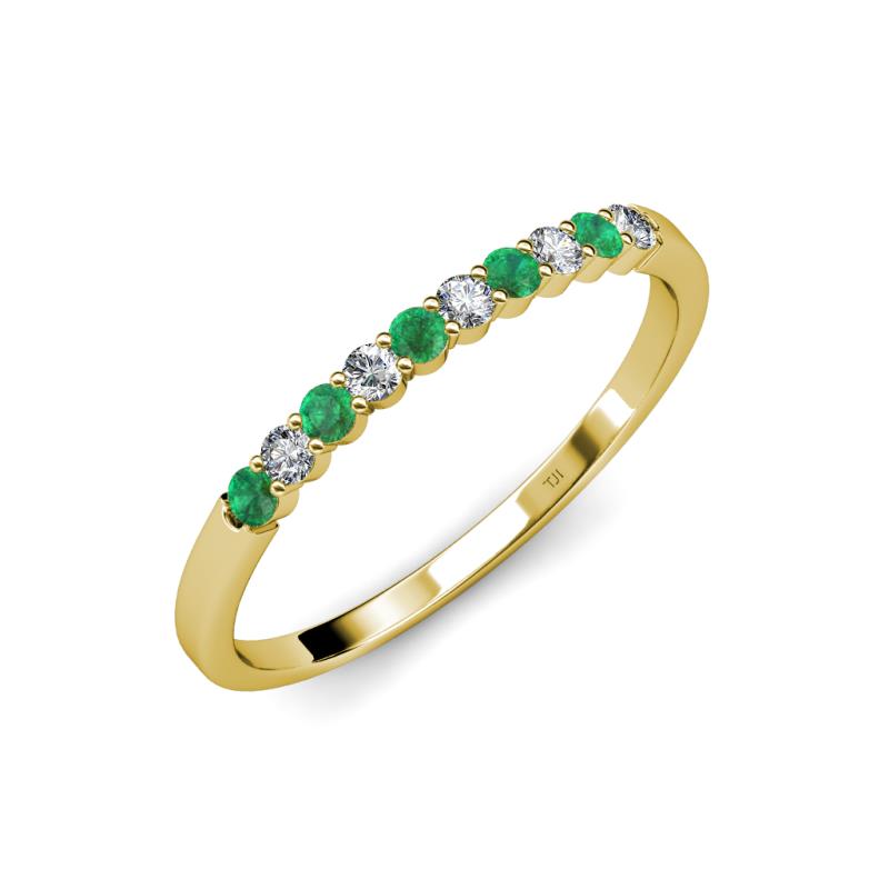 Emerald and Diamond 10 Stone Womens Wedding Band Stackable 0.54 ctw 10K Yellow Gold More Details ...
