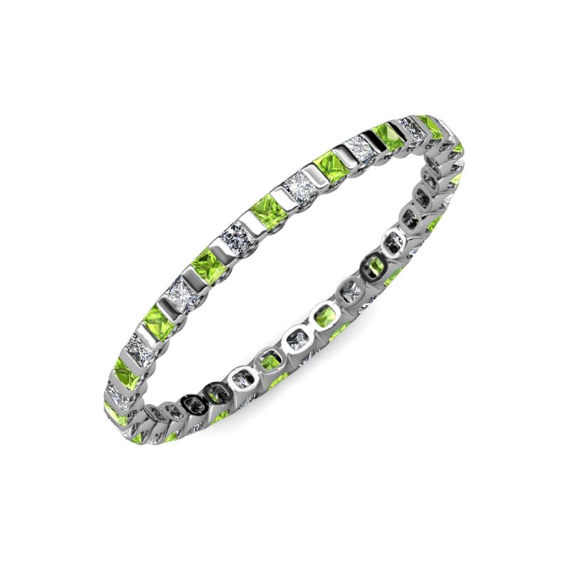 Princess Cut Peridot and Diamond 1.21 ctw* Channel Set Womens Eternity Ring Stackable 18K White Gold More Details ...