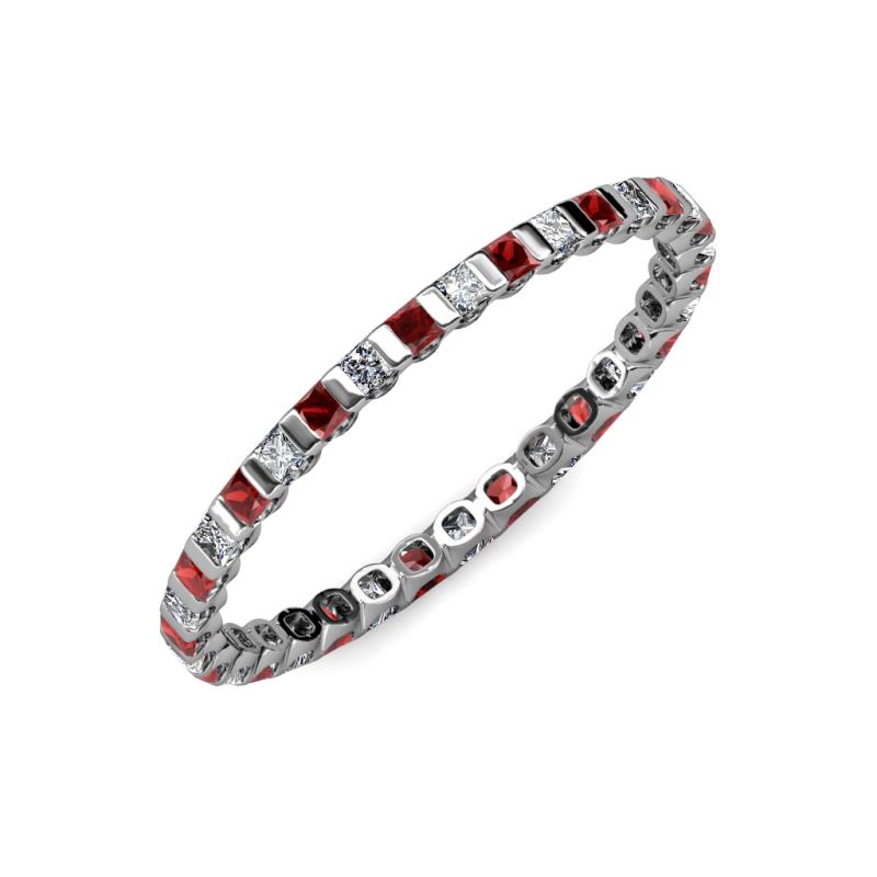 Princess Cut Red Garnet and Diamond 1.21 ctw* Channel Set Womens Eternity Ring Stackable Sterling Silver More Details ...