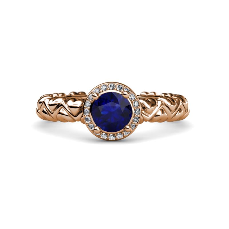 Blue Sapphire and Diamond Heart Shank Womens Halo Engagement Ring 1.05 ctw 14K Rose Gold More Details ...