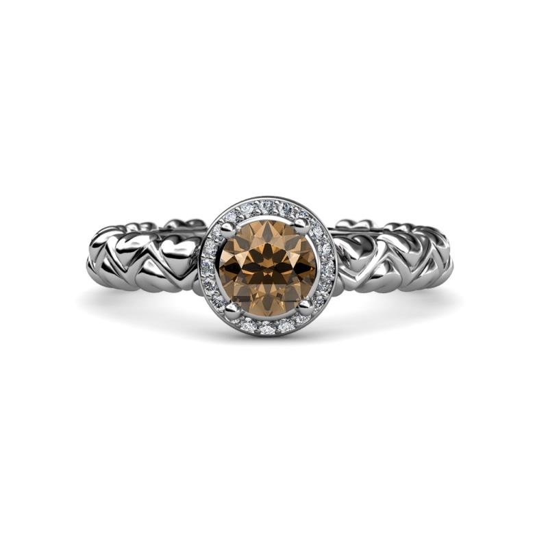 Smoky Quartz and Diamond Heart Shank Womens Halo Engagement Ring 1.05 ctw 14K White Gold More Details ...
