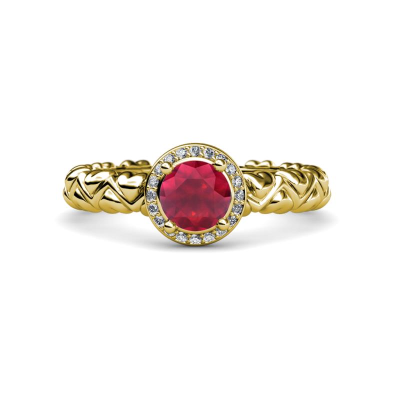 Ruby and Diamond Heart Shank Womens Halo Engagement Ring 1.05 ctw 14K Yellow Gold More Details ...
