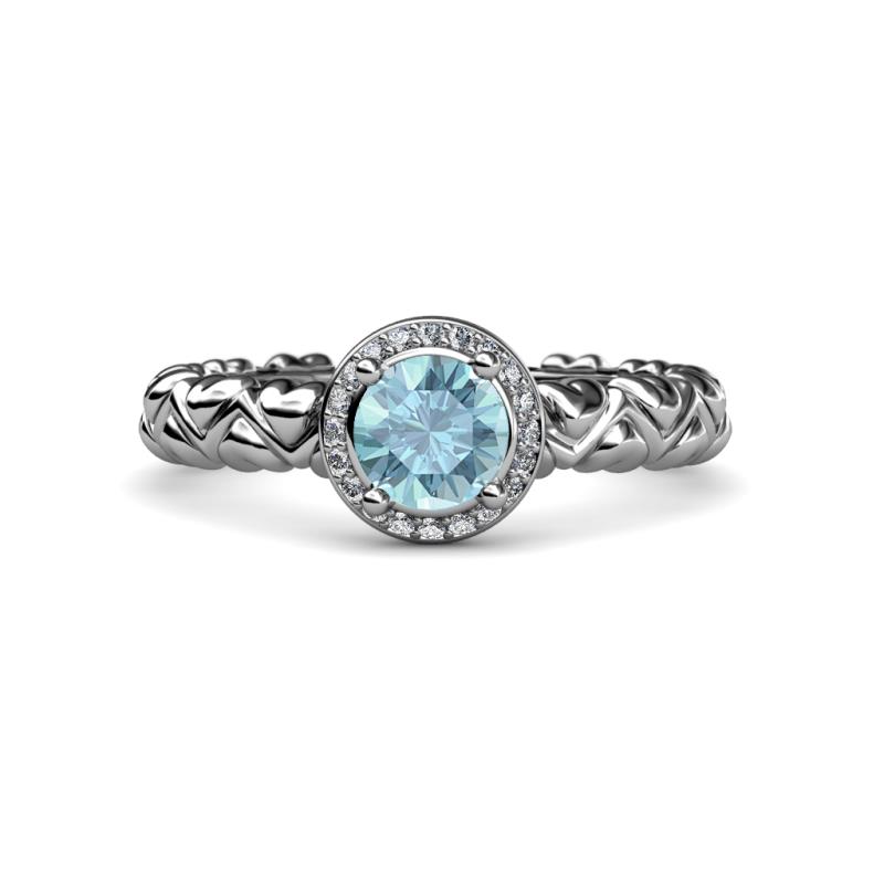 Aquamarine and Diamond Heart Shank Womens Halo Engagement Ring 1.05 ctw 18K White Gold More Details ...