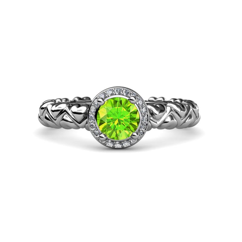 Peridot and Diamond Heart Shank Womens Halo Engagement Ring 1.20 ctw 18K White Gold More Details ...