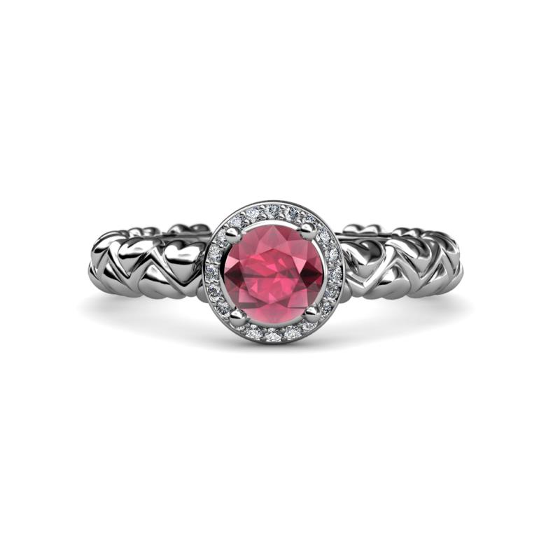 Garnet and Diamond Heart Shank Womens Halo Engagement Ring 1.10 ctw 18K White Gold More Details ...