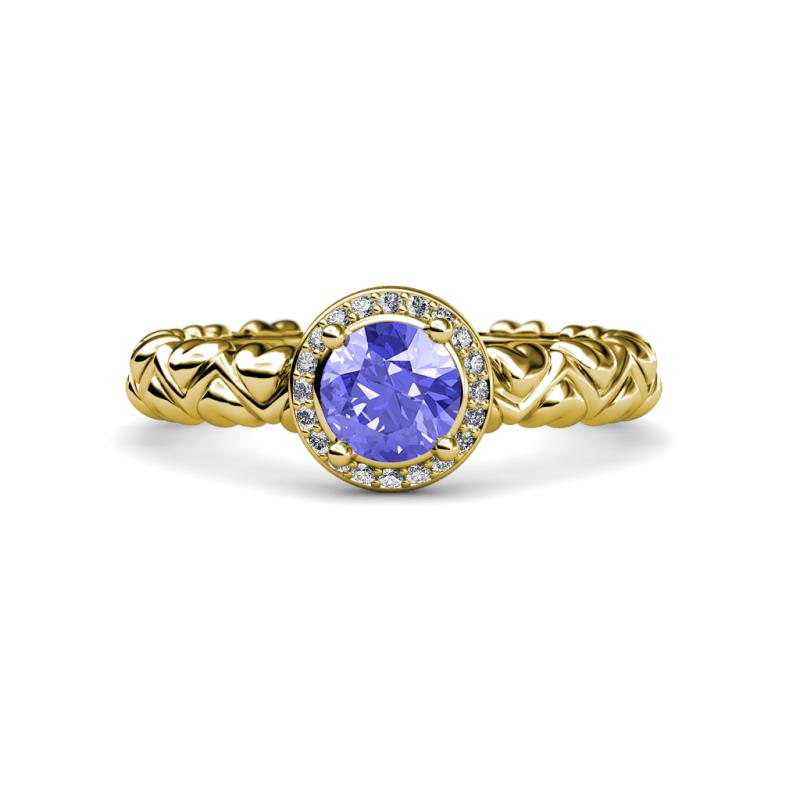 Tanzanite and Diamond Heart Shank Womens Halo Engagement Ring 1.02 ctw 18K Yellow Gold More Details ...