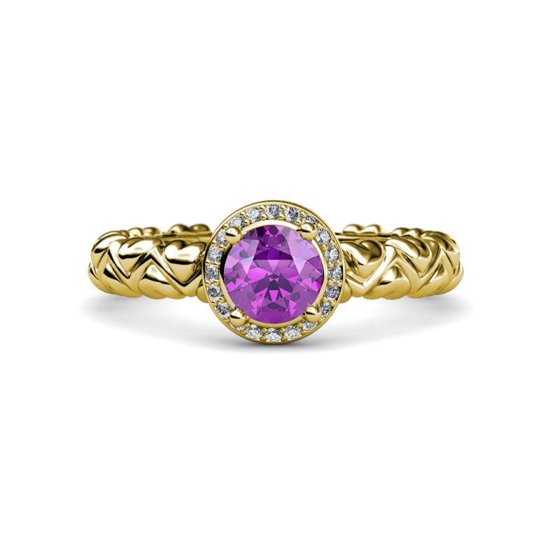 Amethyst and Diamond Heart Shank Womens Halo Engagement Ring 1.05 ctw 18K Yellow Gold More Details ...