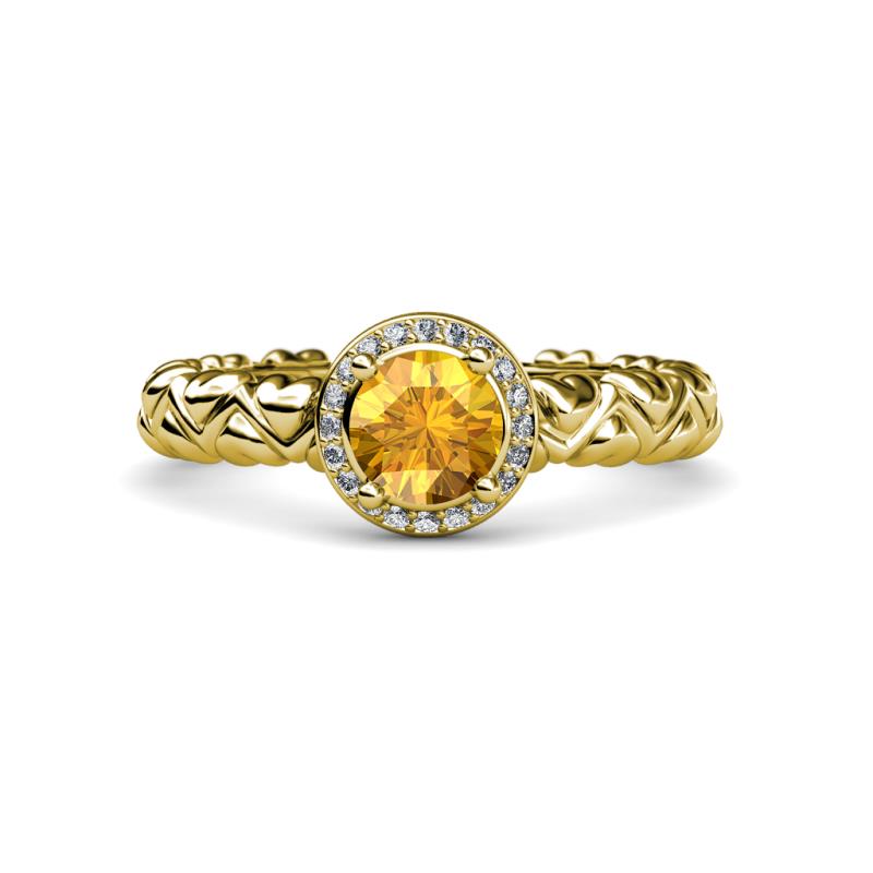 Citrine and Diamond Heart Shank Womens Halo Engagement Ring 1.05 ctw 18K Yellow Gold More Details ...