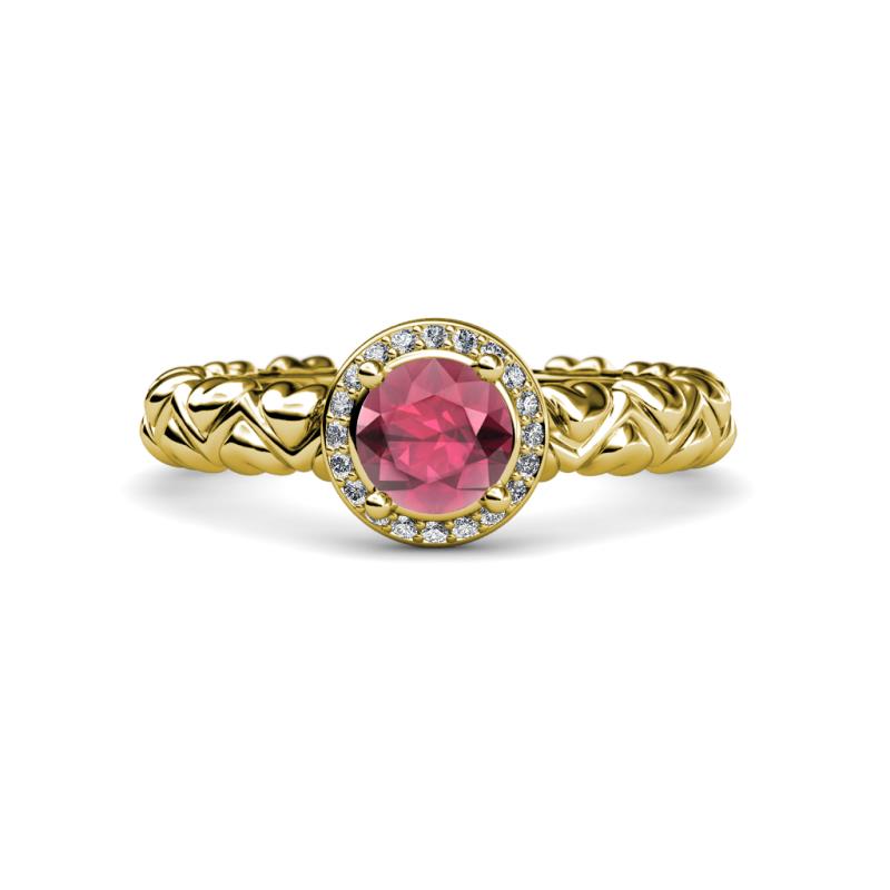 Garnet and Diamond Heart Shank Womens Halo Engagement Ring 1.10 ctw 18K Yellow Gold More Details ...