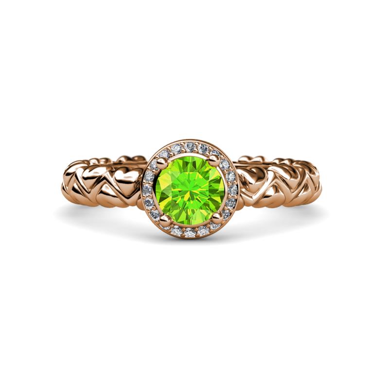 Peridot and Diamond Heart Shank Womens Halo Engagement Ring 1.20 ctw 18K Rose Gold More Details ...