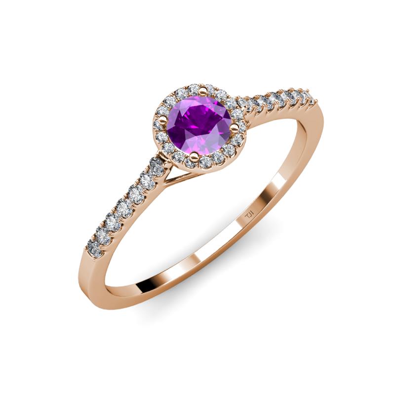 Amethyst and Diamond Womens Halo Engagement Ring 0.89 ctw 14K Rose Gold More Details ...