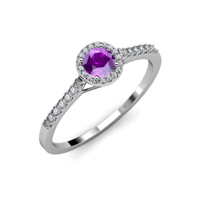 Amethyst and Diamond Womens Halo Engagement Ring 0.89 ctw Platinum More Details ...