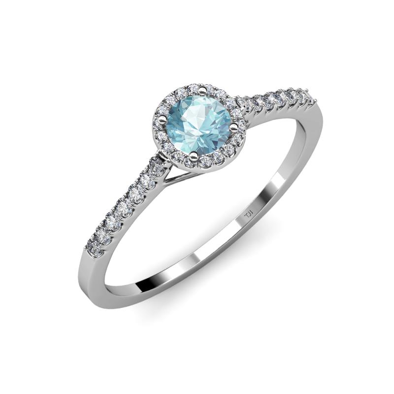 Aquamarine and Diamond Womens Halo Engagement Ring 0.95 ctw Platinum More Details ...