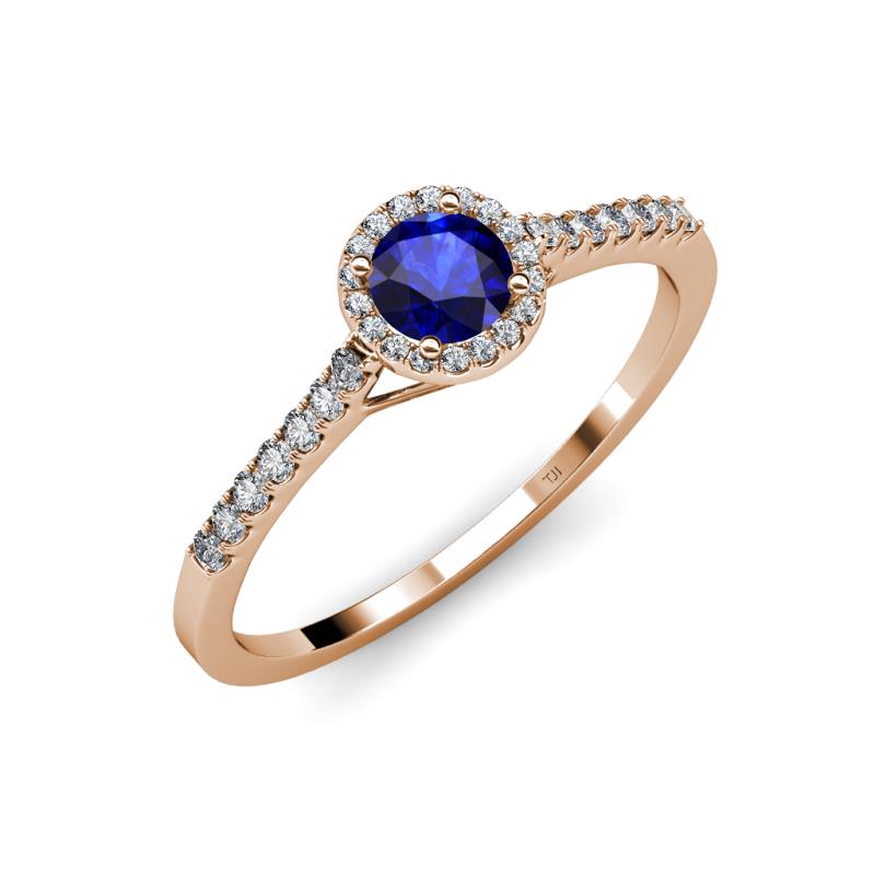Blue Sapphire and Diamond Womens Halo Engagement Ring 0.95 ctw 14K Rose Gold More Details ...