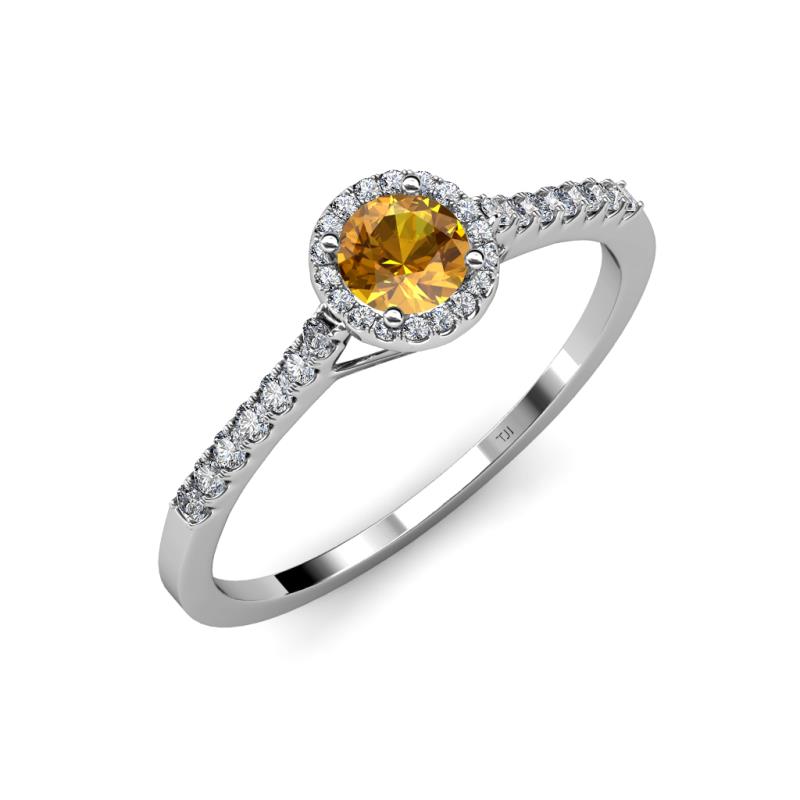 Citrine and Diamond Womens Halo Engagement Ring 0.89 ctw 14K White Gold More Details ...