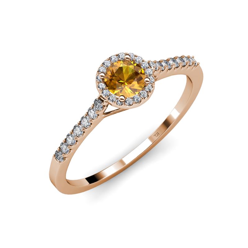 Citrine and Diamond Womens Halo Engagement Ring 0.89 ctw 14K Rose Gold More Details ...