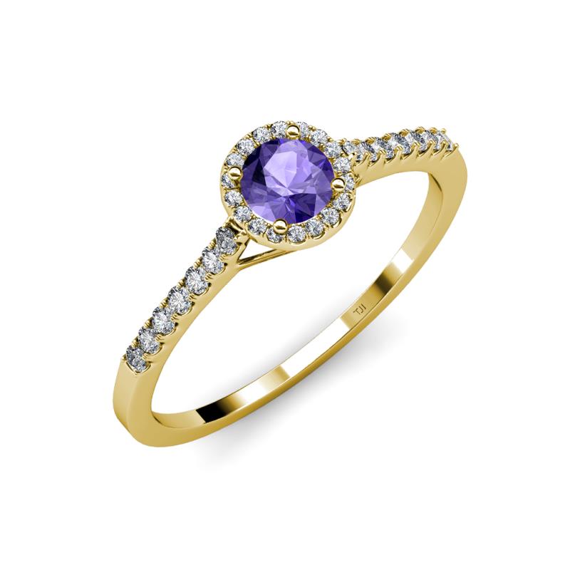 Iolite and Diamond Womens Halo Engagement Ring 0.90 ctw 18K Yellow Gold More Details ...