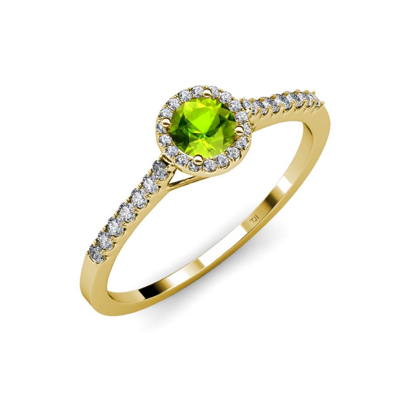 Peridot and Diamond Womens Halo Engagement Ring 0.97 ctw 18K Yellow Gold More Details ...