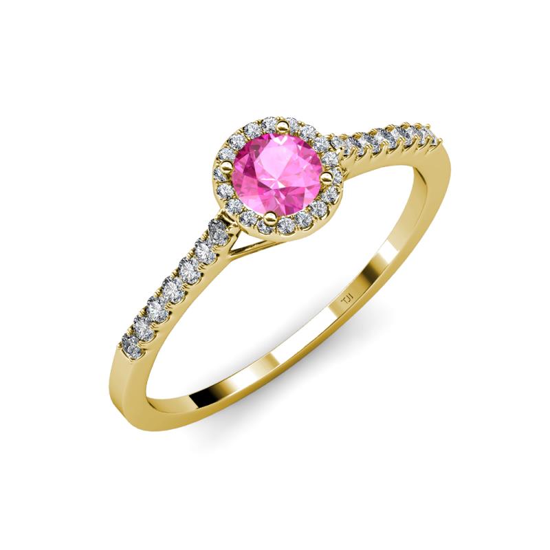 Pink Sapphire and Diamond Womens Halo Engagement Ring 0.97 ctw 18K Yellow Gold More Details ...