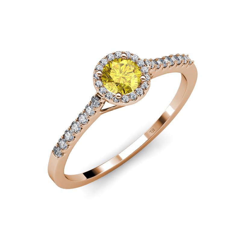 Yellow Sapphire and Diamond Womens Halo Engagement Ring 0.97 ctw 14K Rose Gold More Details ...