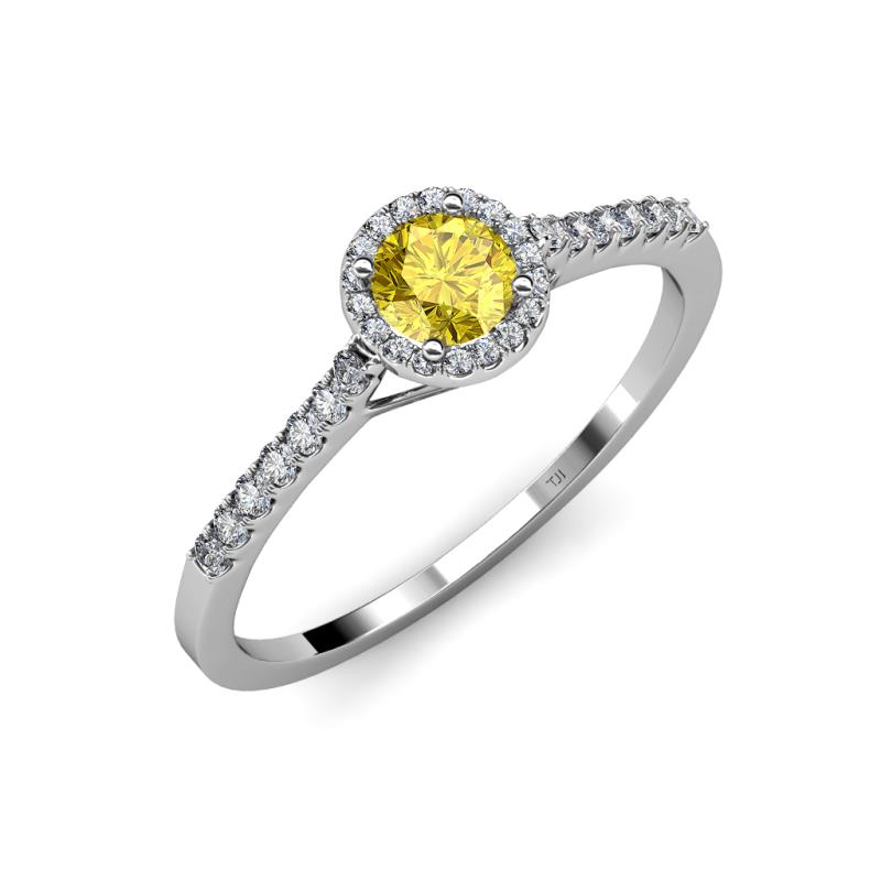 Express your desire to Grow old with her with this 0.97 ct tw Halo Engagement Ring with Center Yellow Sapphire embraced by halo of Diamonds which adds beauty to it.