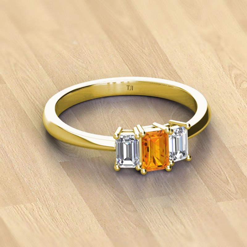 Emerald Cut (6x4 mm) Citrine and Lab Grown Diamond 1.26 ctw Side Gallery Work Three Stone Engagement Ring 18K Yellow Gold More Details ...