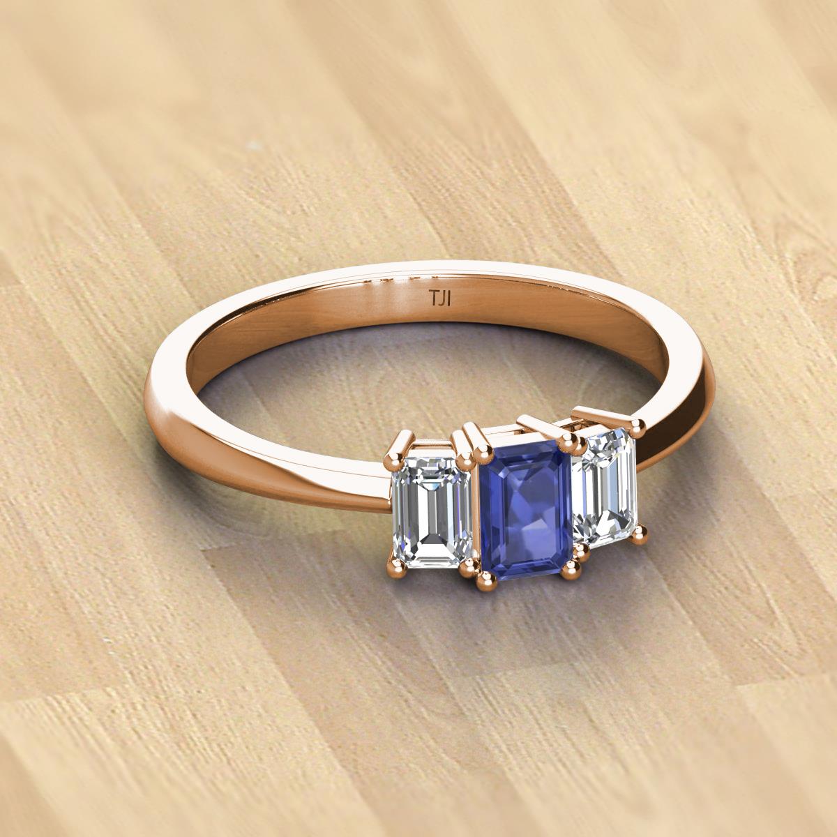 Emerald Cut (6x4 mm) Iolite and Lab Grown Diamond 1.20 ctw Side Gallery Work Three Stone Engagement Ring 14K Rose Gold More Details ...