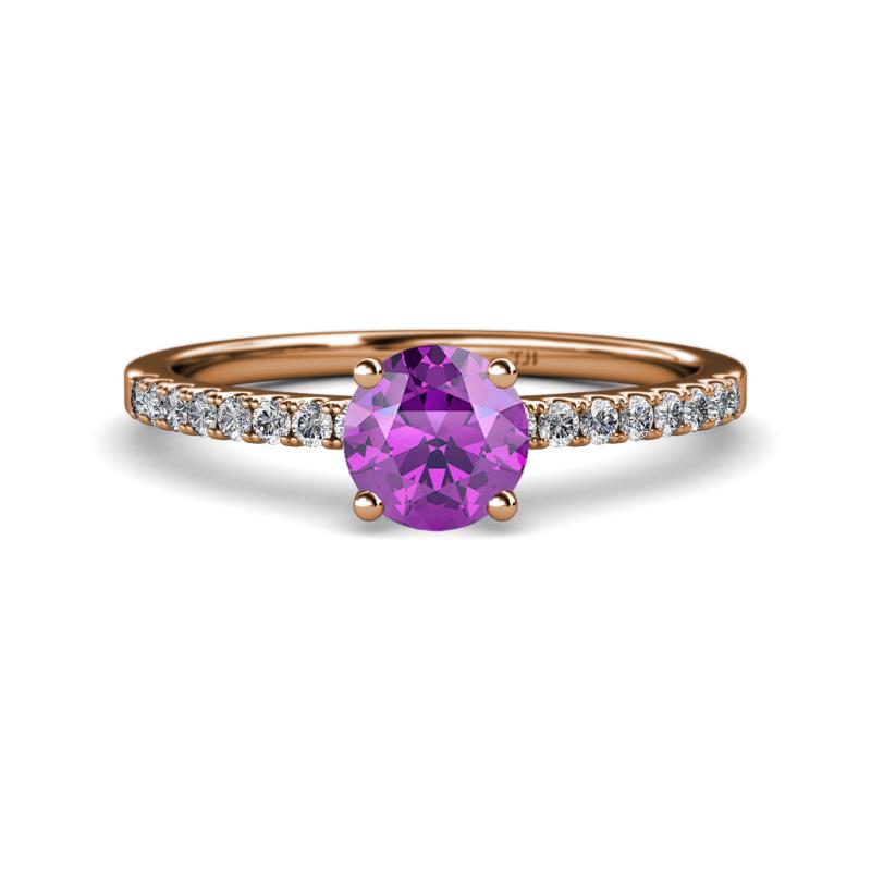 Round Amethyst and Diamond Womens Solitaire Plus Engagement Ring 1.15 ctw 18K Rose Gold More Details ...