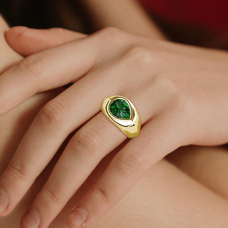 Designed for those who appreciate bold elegance, this Pear-shaped Created Emerald Solitaire Ring features a flush-set design making it a perfect statement piece for any occasion.