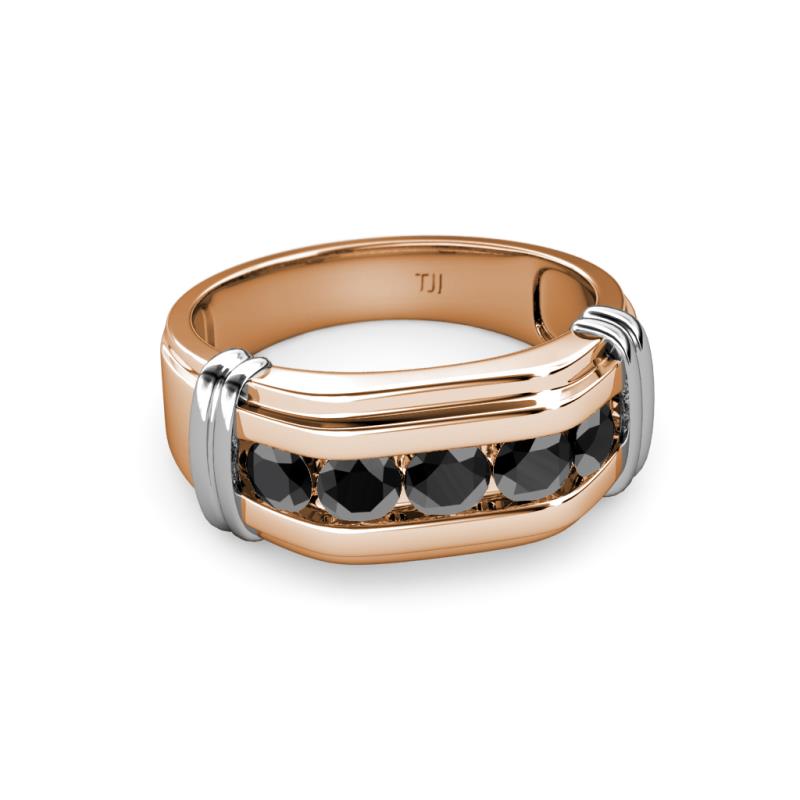 Black Diamond 5 Stone Men Wedding Ring 0.55 ctw 14K Rose Gold More Details ...