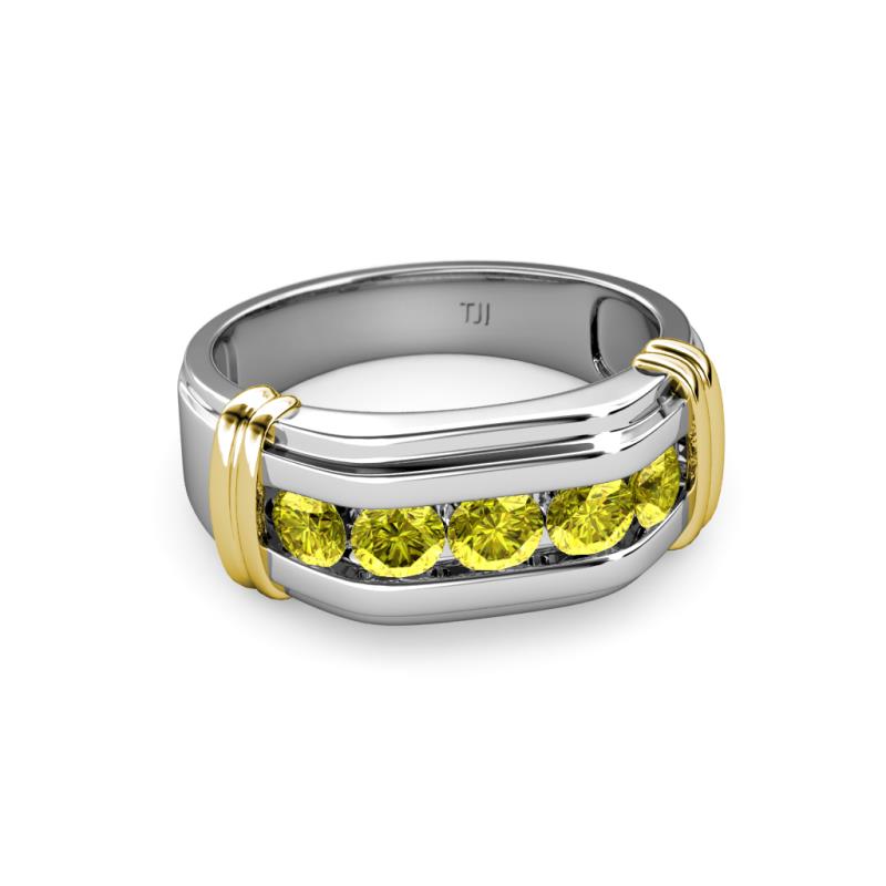 Yellow Diamond 5 Stone Men Wedding Ring 0.50 ctw 18K White Gold More Details ...