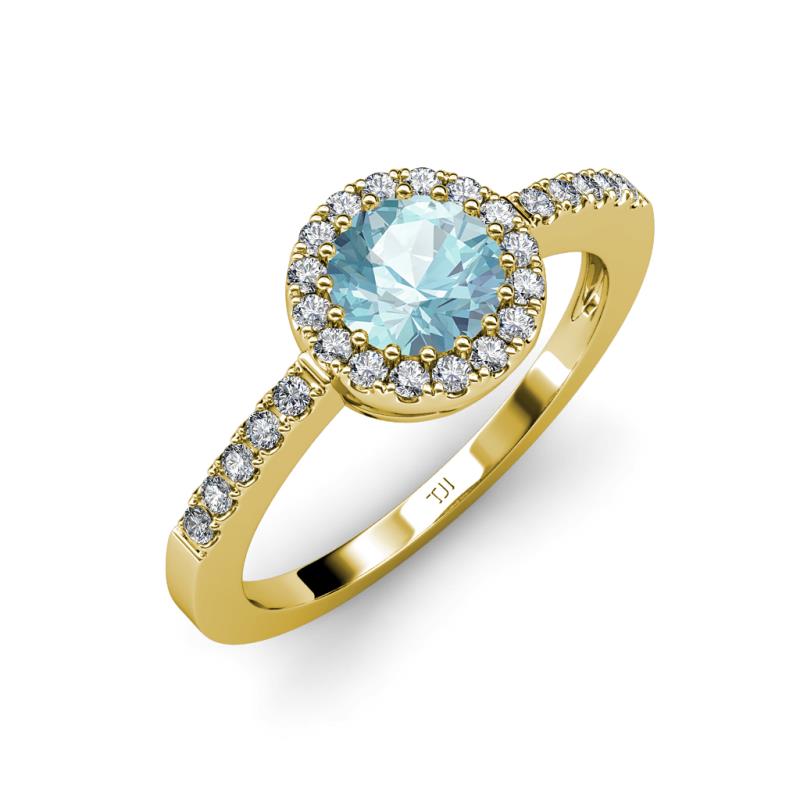 Aquamarine and Diamond Womens Halo Engagement Ring 1.41 ctw 14K Yellow Gold More Details ...