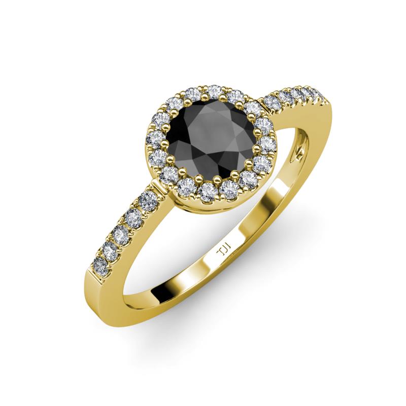 Black and White Diamond Womens Halo Engagement Ring 2.26 ctw 14K Yellow Gold More Details ...