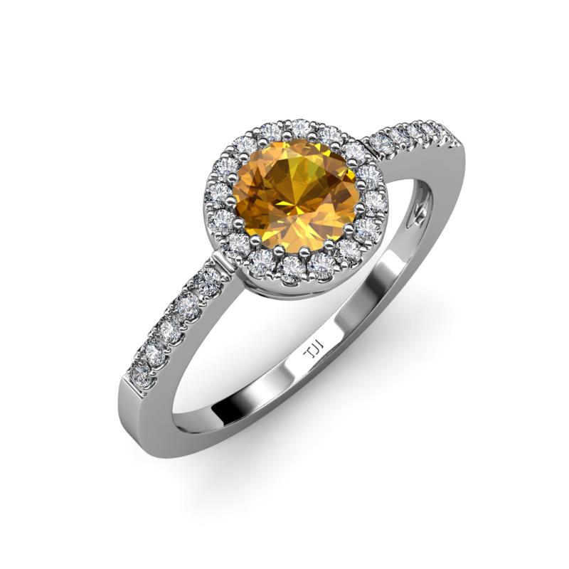 Citrine and Diamond Womens Halo Engagement Ring 1.41 ctw Platinum More Details ...
